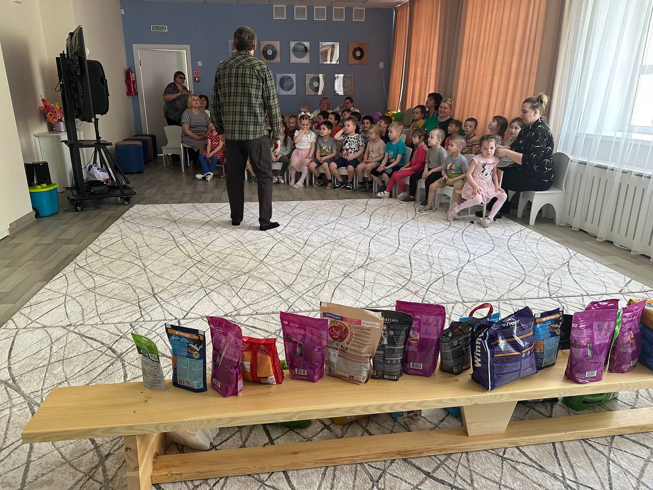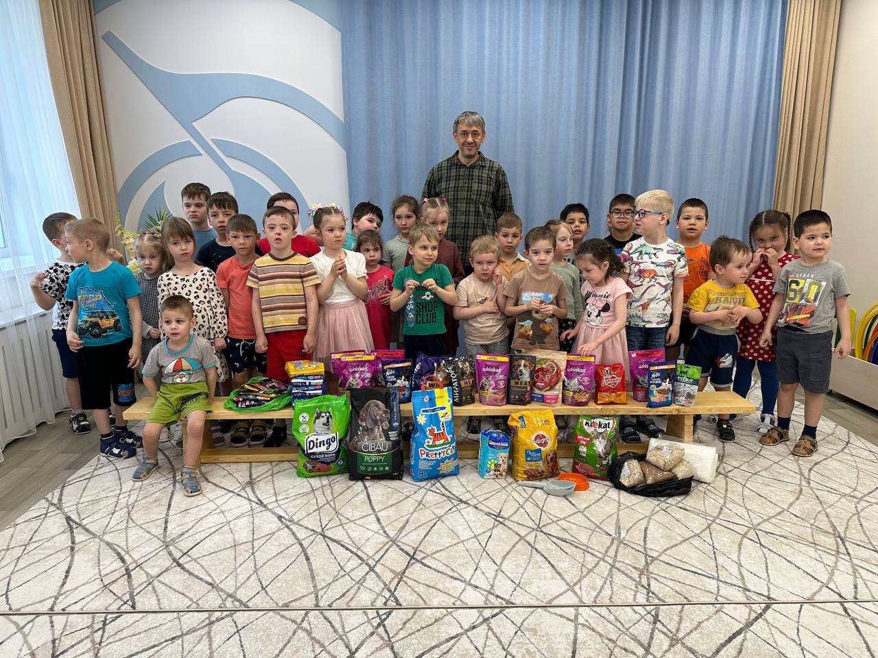 Ребятки вместе с родителями и воспитателями собрали для бездомных собак и кошек вкусные гостинца...