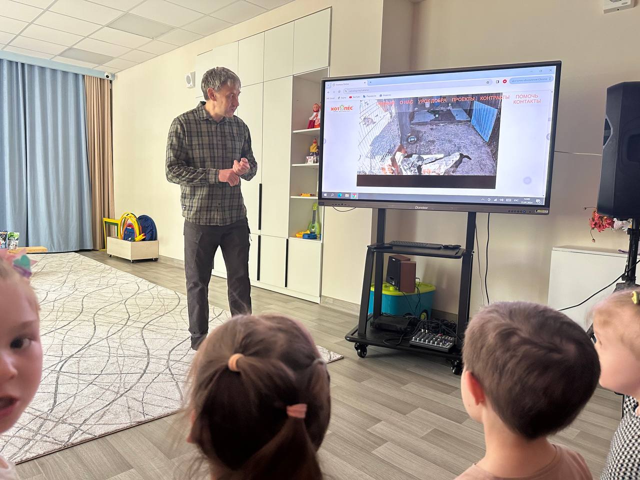Мы провели традиционный Урок Добра, где вспомнили про ответственность за домашних питомцев и про помощь бездомным братьям меньшим... Мы показали жизнь Приюта в прямом эфире! Ребята с удовольствием слушали, смотрели и задавали вопросы!