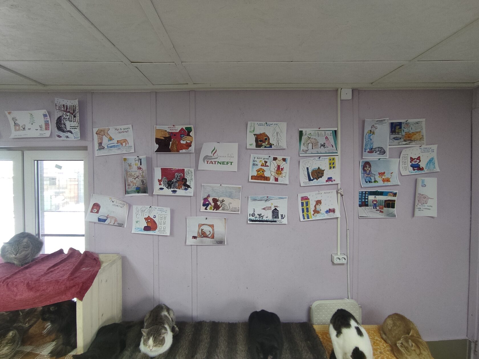 Кроме этого, ребята высоко оценили выставку детских рисунков, посвященную бездомным кошкам, а также помогли убрать снег на территории Приюта.