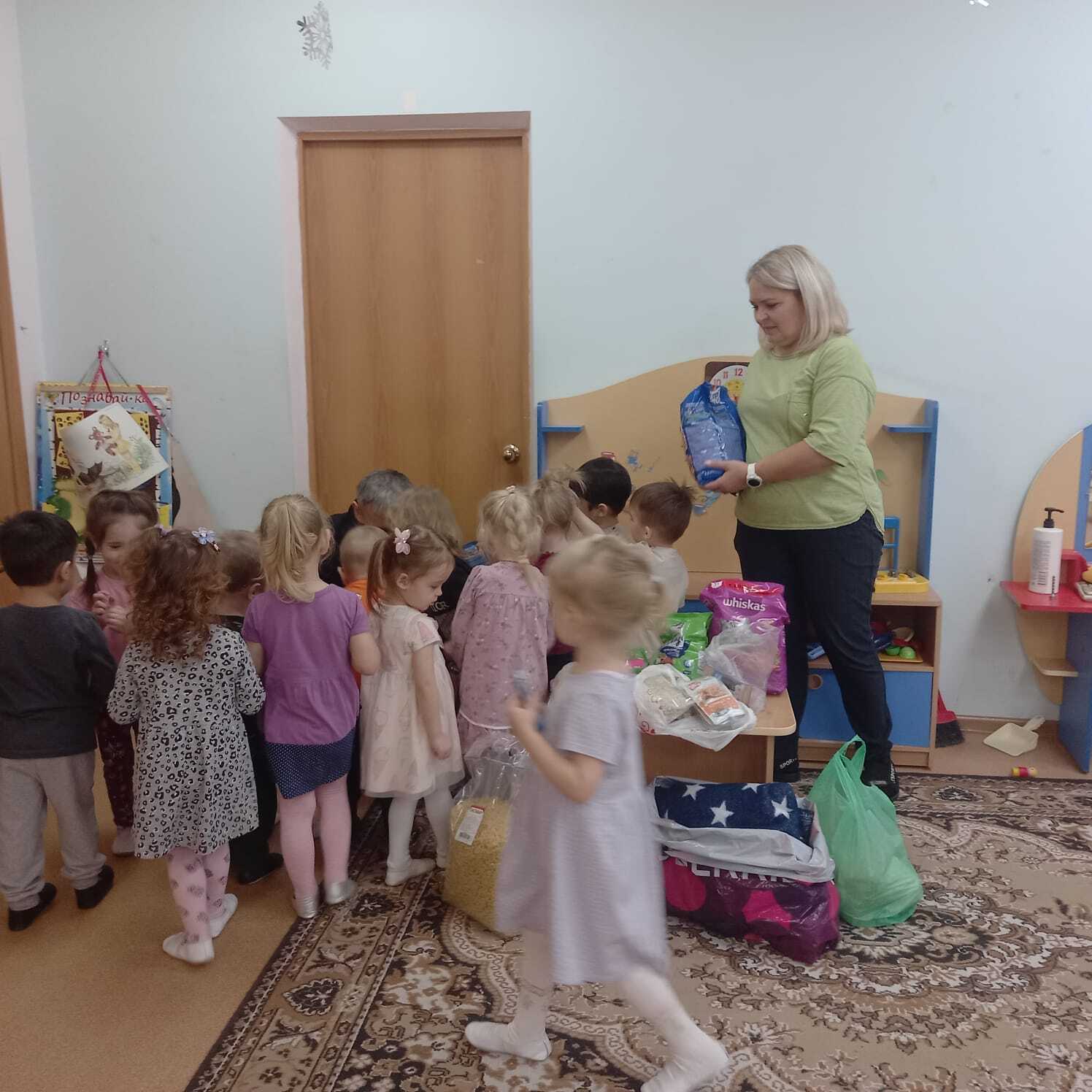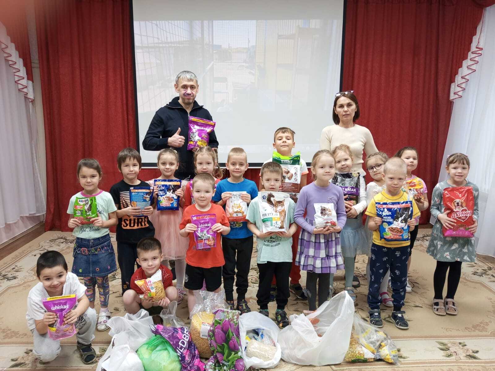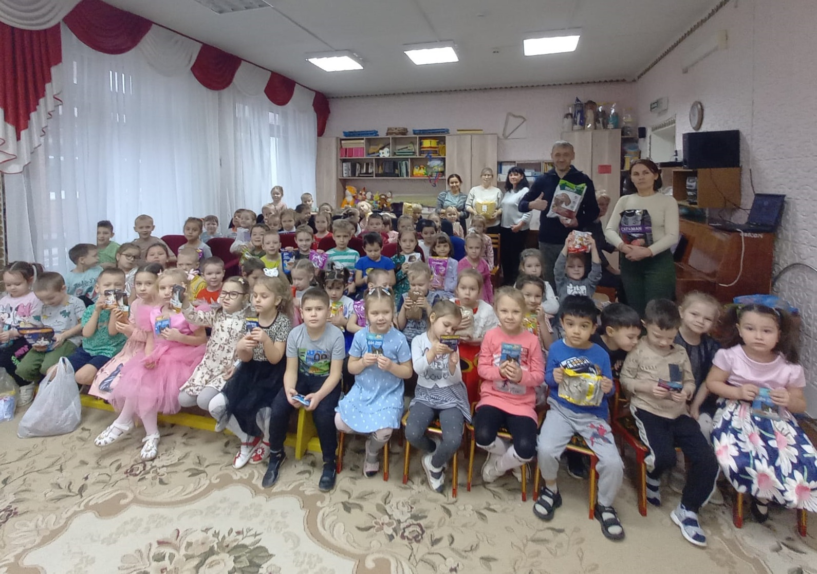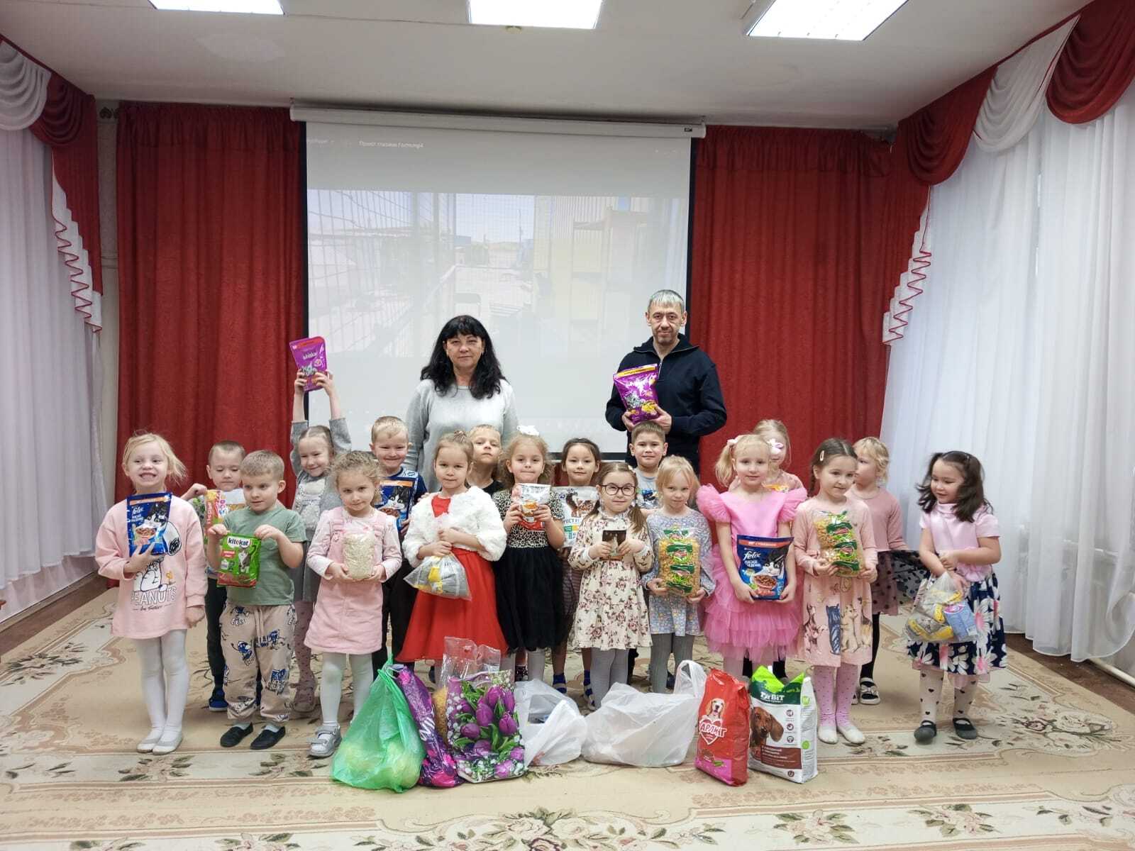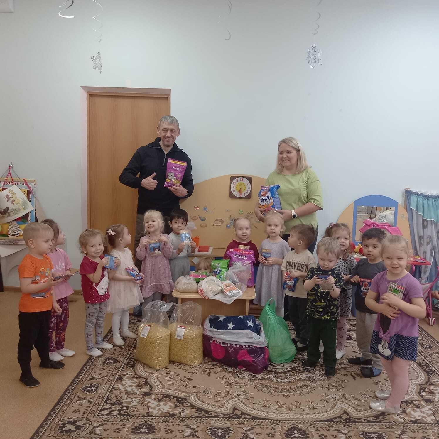 Ребятки из 4 детсада Солнышко в Зеленодольске провели благотворительную акцию и собрали корма, наполнители и другие подарки для бездомных собак и кошек нашего Приюта, и пригласили нас в гости.